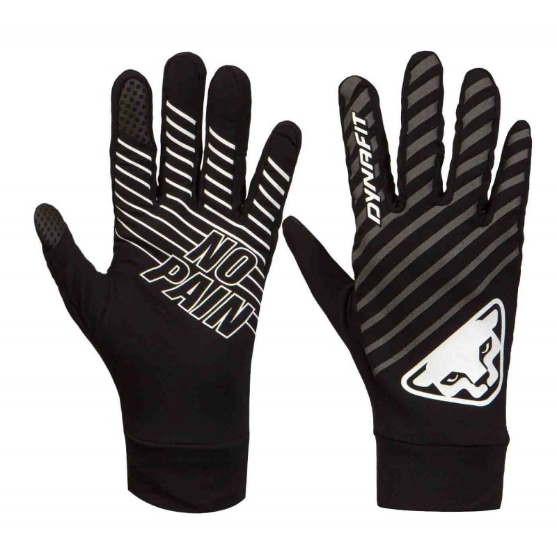 Reflective design for more safety: These Alpine Reflective Gloves keep your hands warm, plus they keep you more visible when trail running in the dark. As a year-round runner you know the problem: In fall and winter months the days are short, and you are often forced to get in your workouts after dusk or pre-dawn. To ensure you can be seen by others, DYNAFIT developed the Alpine Reflective Gloves with large-scale reflectivity. Meaning you can click off your workouts in the dark without worry. The light insulating fabric offers good insulation and comfortable wear in cool temperatures. It also prevents your hands from getting sweaty with its good breathability. A “No Pain, No Gain” print design on the palms guarantees great grip if you like to run with poles. Alpine Reflective Gloves – comfort and safety in the transitional seasons.